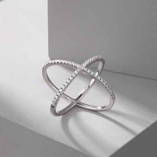 Zirconia Inlaid Cross Geometric Ring, 925 Sterling Silver