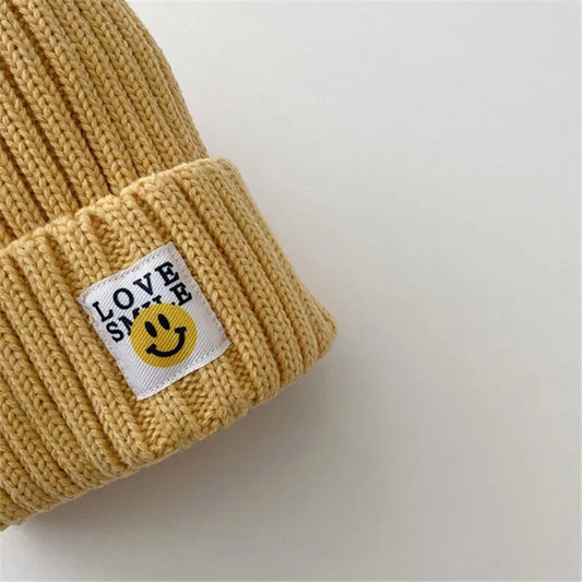 Baby Toddler Ribbed Knit Smile Face Beanie 'LOVE SMILE'