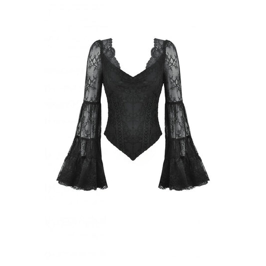 Dark in Love Zuri Gothic Romantic Lace Patchwork Bell-Sleeve Layered Cuff Top