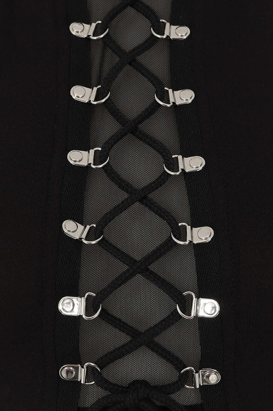 Banned Black Freyja Crop Top with Key Hole and Mesh Sleeves