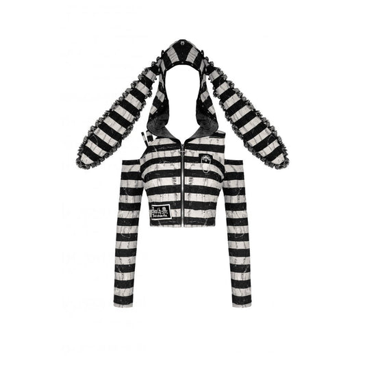 Dark in Love Xianne Prison Bunny Striped Hooded Crop Top