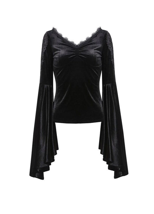 Dark In Love Violet Black Velvet Top with Dramatic Bell Sleeves