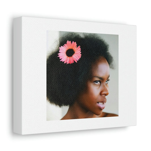Black Girl With Flowers In Her Hair Digital Art 'Designed by AI' on Satin Canvas