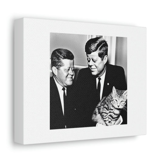 JFK Meets Garfield The Cat Digital Art 'Designed by AI' on Satin Canvas