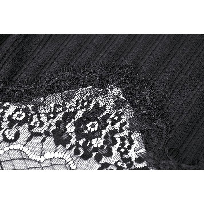 The Dark in Love Eliza Gothic Black Camisole is the perfect addition to your wardrobe. Featuring delicate lace detailing and a ribbed fabric texture, this gothic-inspired crop top and shorts set offers a stylish and edgy look. The minimalist design on the back completes the ensemble.