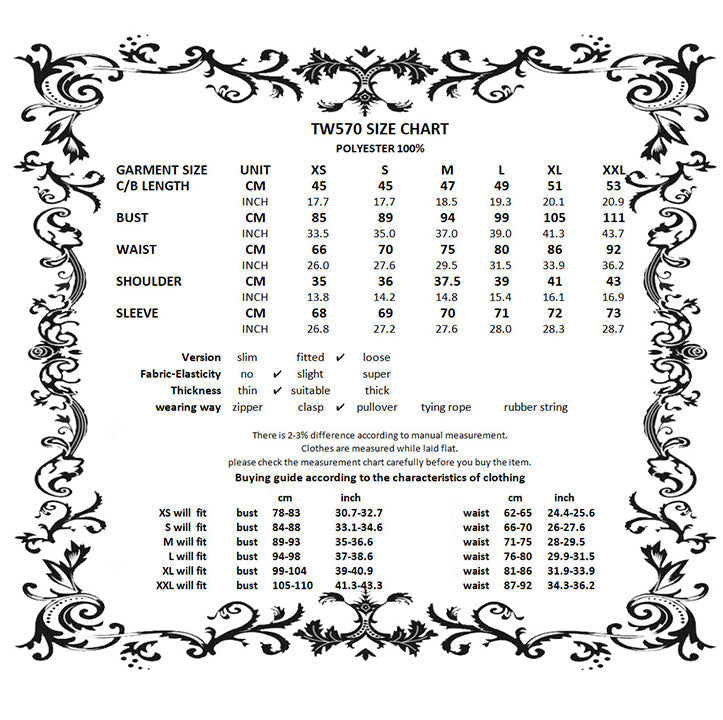 For the perfect fit please see Dark in Love’s size guide in the images.