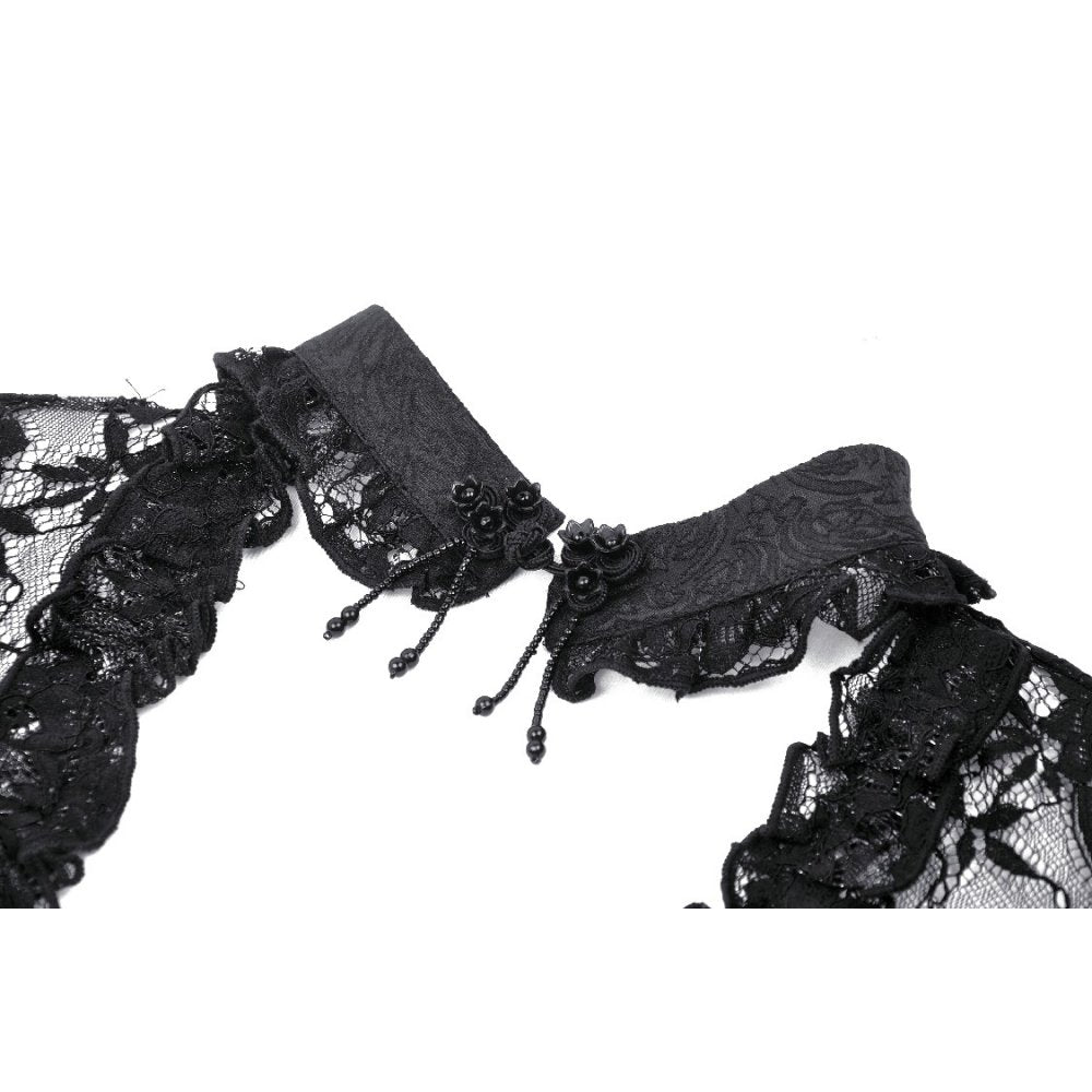 Elevate your style game with the Dark in Love Lace Willow Top. Embodying a flirty and feminine charm, this top features delicate lace cuffs and a feature collar. The ribbon lace up back adds a touch of gothic charm, while the front buttons add a classic touch.