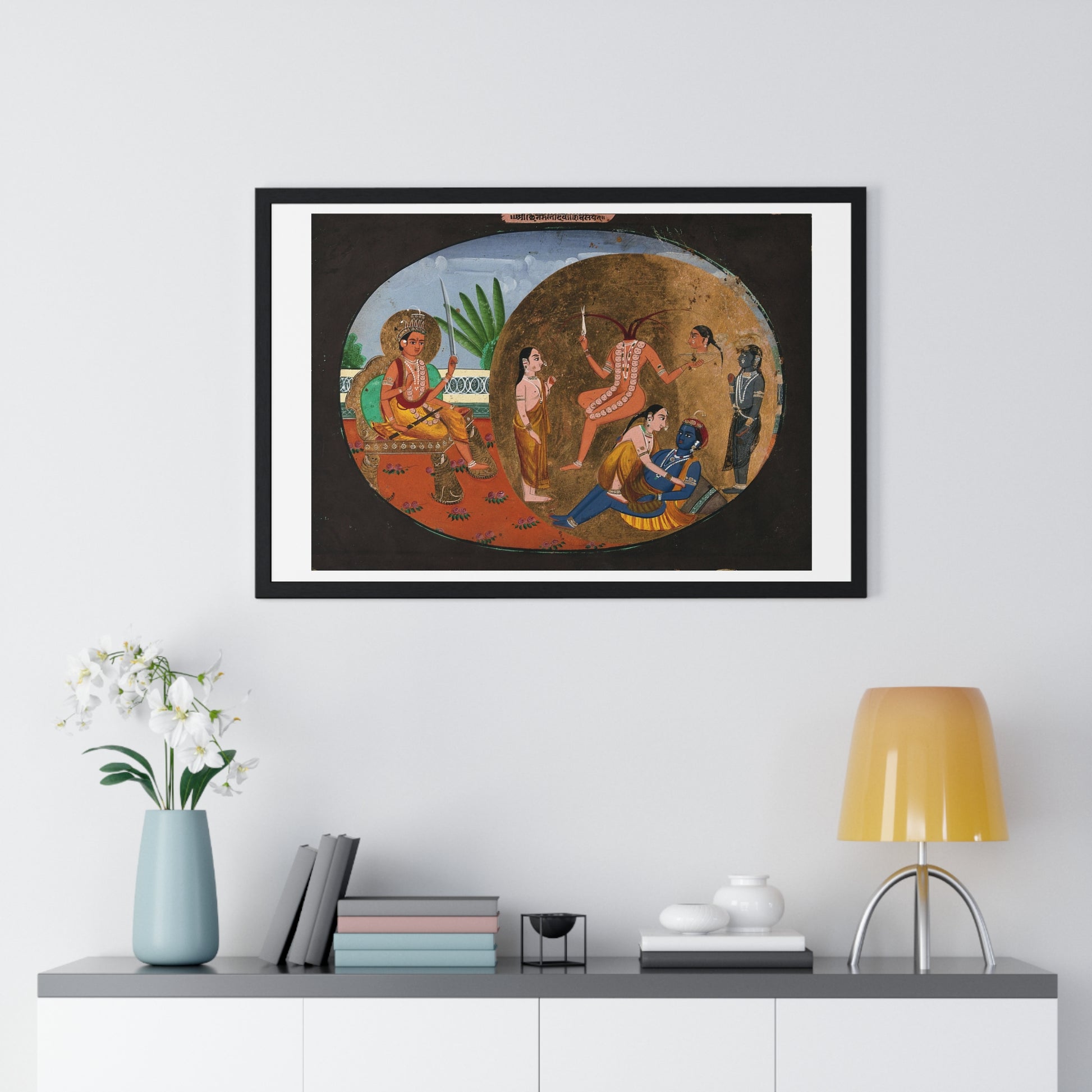 Hindu Deities Shiva, Chhinnamasta, Kamadeva and Rati, 19th Century Gouache Painting by an Indian Artist, Framed Print