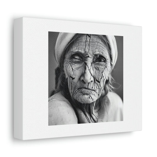 Old Woman's Face With Scars Digital Art 'Designed by AI' on Satin Canvas