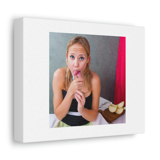 Girl Eating Semen Soup Digital Art 'Designed by AI' on Satin Canvas, Stretched