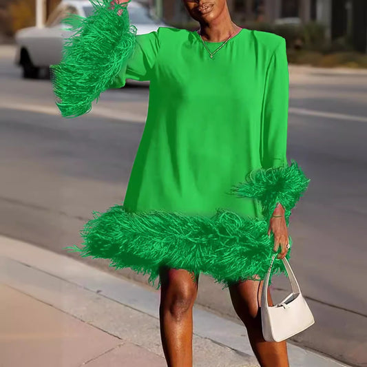 Vireous Feather Glam Loose Socialite Dress