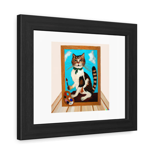 Cat As The Artist Digital Art 'Designed by AI' Wooden Framed Print