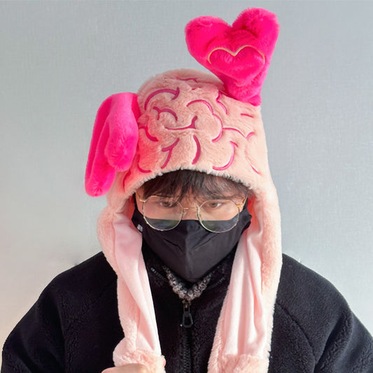 Brain Design Plush Handbag and Hat with Movable 'Love' Ears Two-Piece
