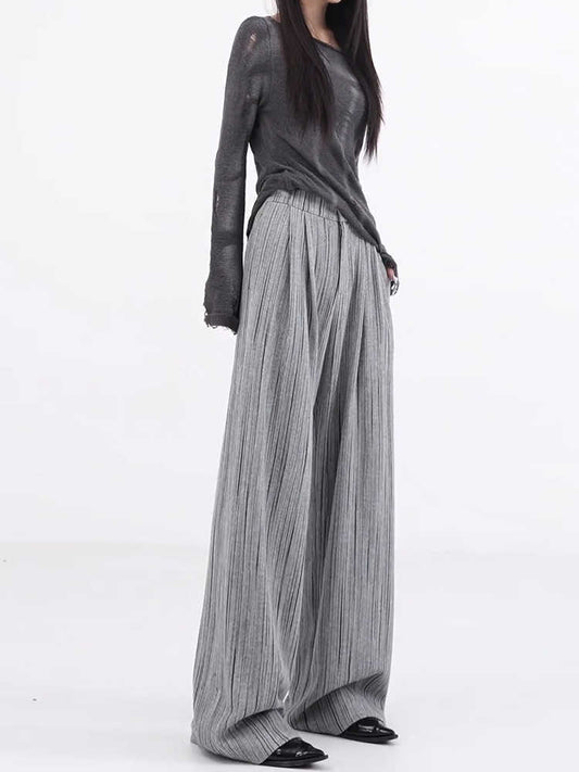 Vireous Ribbed Very Loose Women's Casual Pants, Pleated Mop Wide Leg