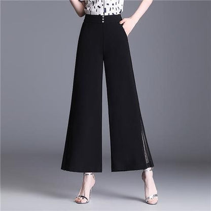 French-Style High Waist Loose Cropped Drape Chiffon Pants