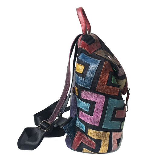 Genuine Leather Geometric Colours Backpack