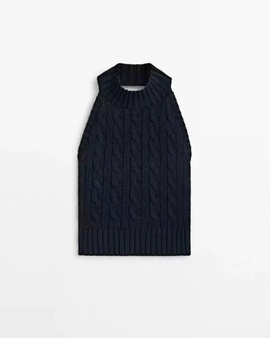 Women's High Neck Ribbed Knitted Woollen Vest Top, Catwalk Collection