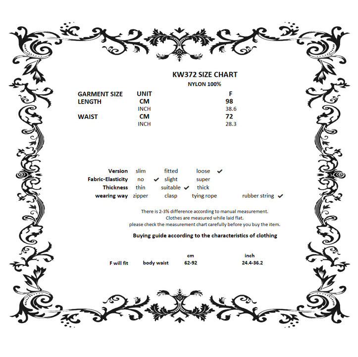 This skirt comes in one size designed to fit UK sizes 6 to 16. Take a peek at the bottom of the size guide image for some fit tips.