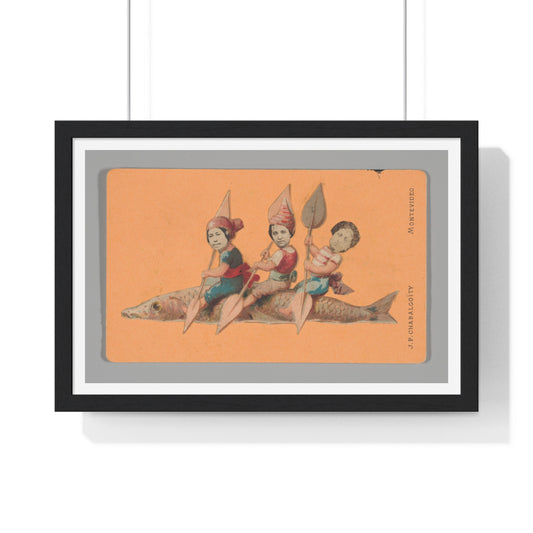 Uruguayan Photo Collage, Three People Holding Oars, Sitting on a Large Fish (circa 1875) Framed Art Print
