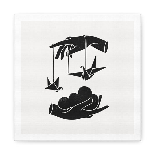 Spiritual Divine Hands with Black Origami Bird, Art Print, on Satin Canvas