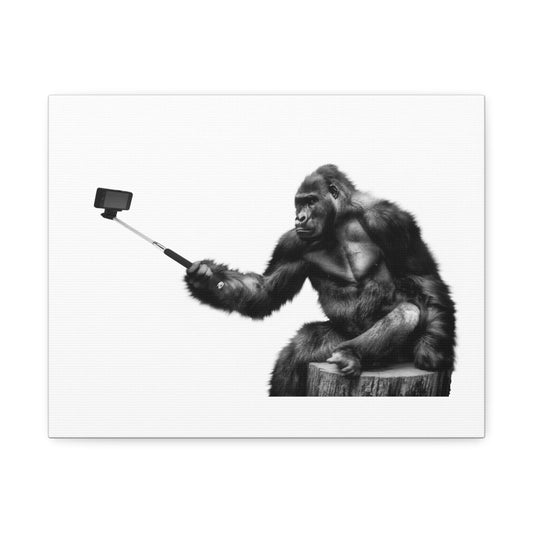 Gorilla with Selfie Stick, Absudist Art Print on Satin Canvas