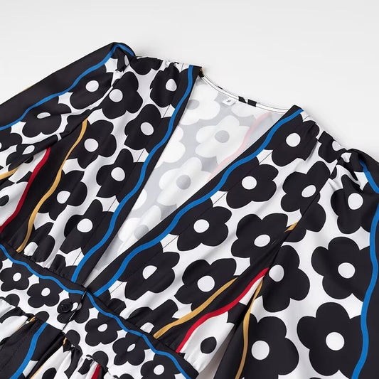 Women's Fashion Boho Black & White Print Elegant Dress