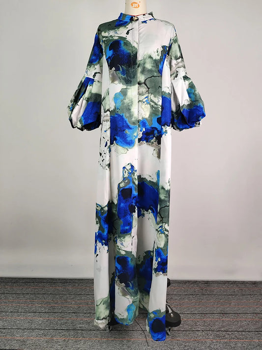 Uoozee Floral Printed Floor-Length Dress, Puff Sleeves