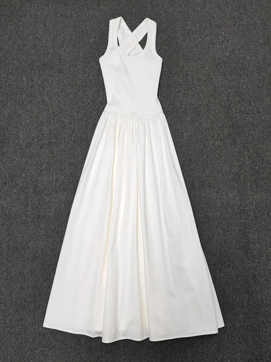 Vireous French Minimalist Knitted Tank Dress, Black and White