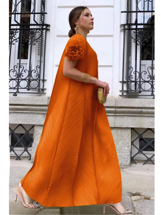 Vireous Geometric Pleated Cocktail Dress, Flower Disc Decoration
