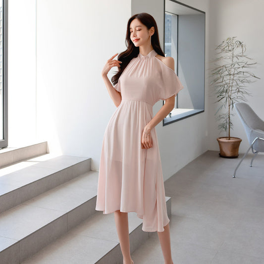 Vireous Suspender Dress French-Style High Split Summer Dress