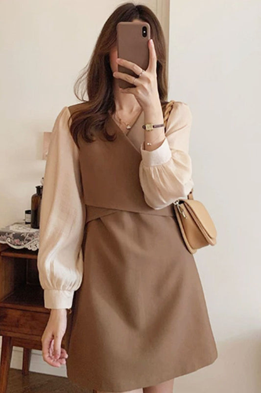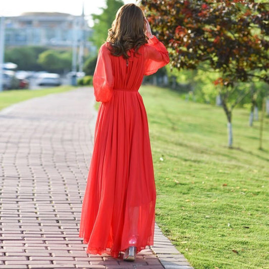 Vireous Flowy Long Sleeve Chiffon Lightweight Dress