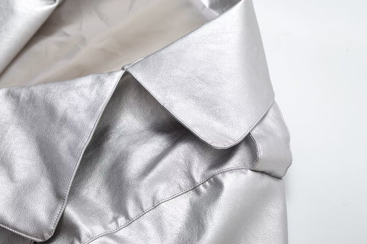 Vireous Women's Glam Shimmering Silver Retro Leather Jacket