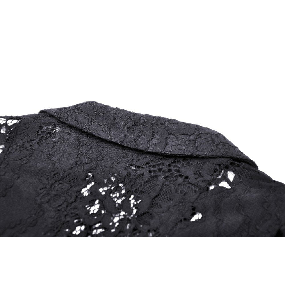 Overall, the Dark in Love lace coat is a must-have for anyone looking to add a unique and stylish piece to their wardrobe. With its extra long sleeves, pointed collar, and ruffle detail, this coat is sure to become a favourite for years to come.