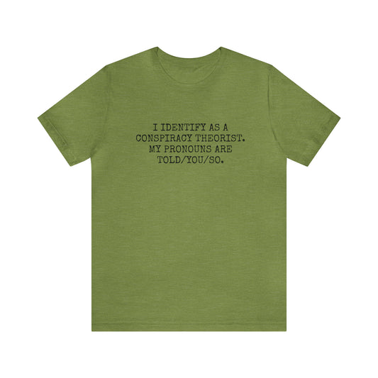 I IDENTIFY AS A CONSPIRACY THEORIST, MY PRONOUNS ARE TOLD/YOU/SO T-Shirt