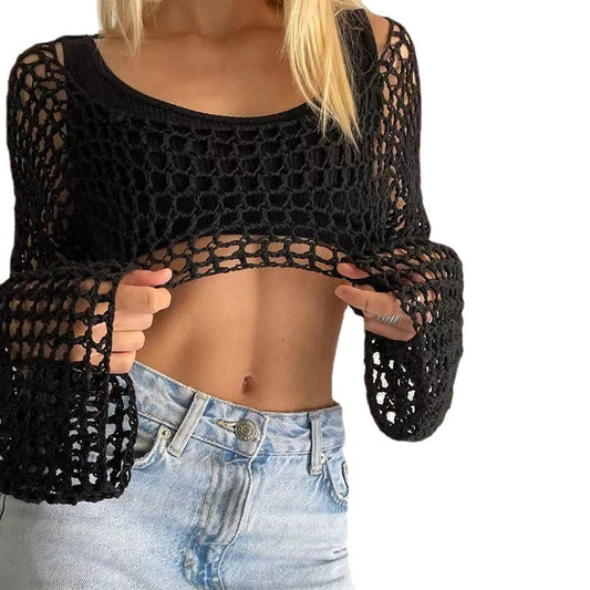 Vireous Woollen Weave Smock Ultra-Short Sleeve Top