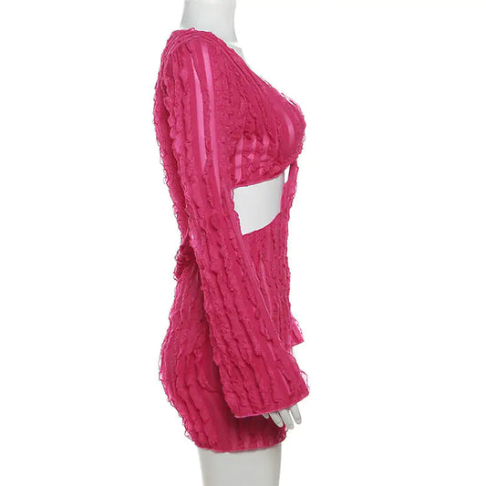Long Sleeve Metallic Cutout Bodycon Mini Dress