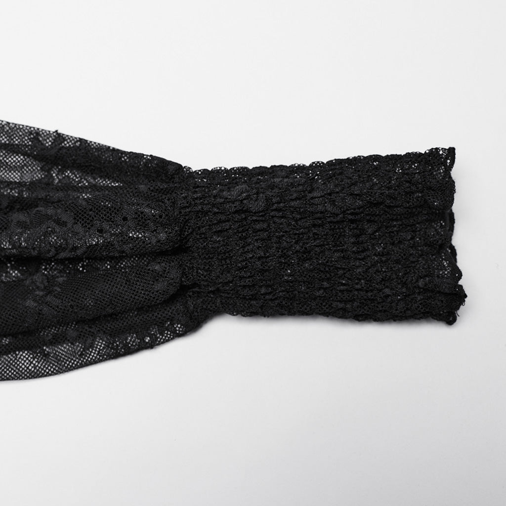 Dazzle in our Punk Rave Demille Sequinned Lace Blouse! Crafted with elastic lace and mesh for a comfortable, loose fit. The three-dimensional u-shaped decal and sequin pleated lace add a touch of elegance. With custom buttons and lantern sleeves, it's both luxurious and easy to wear.