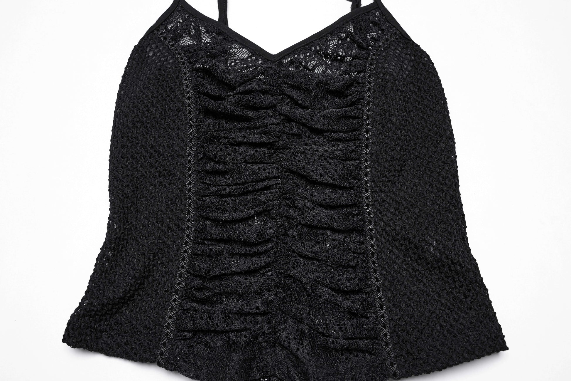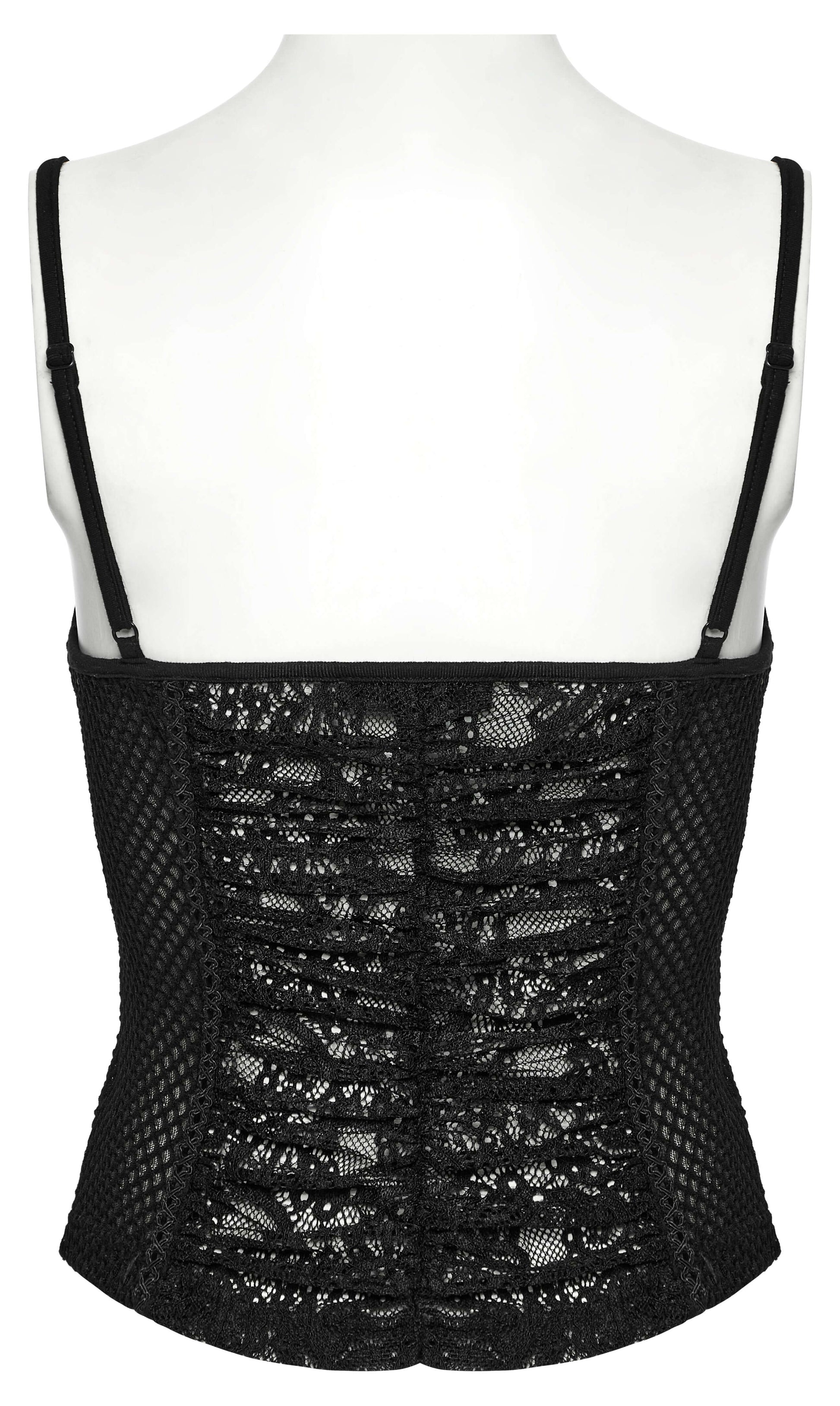 Take a walk on the wild side with the Punk Rave Zerah Sexy Camisole. Made of fish scale mesh and lace, this top features a front and back pleat design for a seductive and dreamy look. With its simple and slim fit style, this cami will have heads turning in no time.