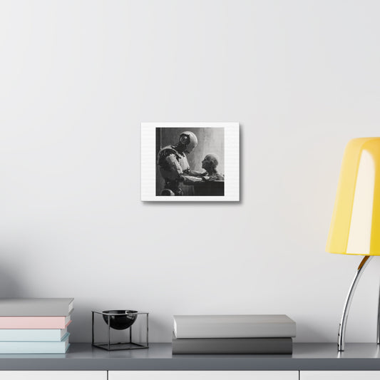 Old Man and the Ageing Cyborg, a Bio-Techno-Social Definition of Ageing Art Print 'Designed by AI' on Satin Canvas