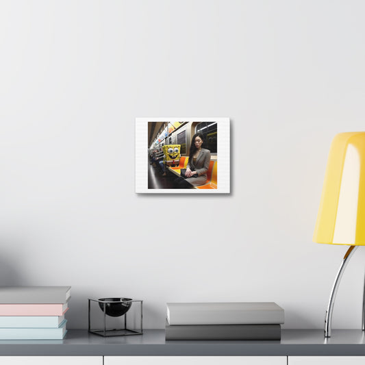 Woman Being Stalked on the Subway by SpongeBob II Digital Art 'Designed by AI' on Satin Canvas