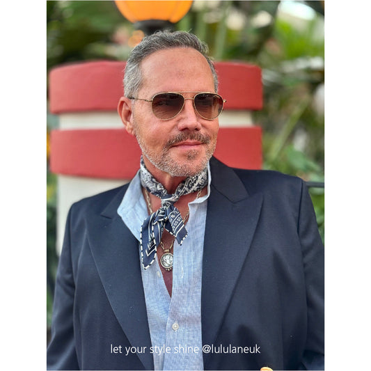 Navy Heritage Paisley Silk Scarf, 53cm Hand-Rolled Unisex Bandana