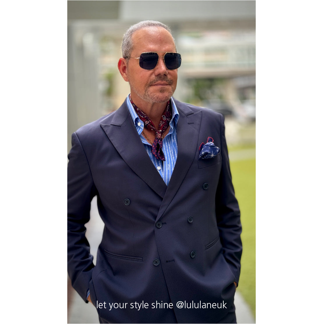 Elevate your style with this Men's Silk Neckerchief Scarves, crafted from luxurious silk twill in Plum Red and Navy Blue. Its classic paisley pattern and hand-rolled edges add timeless sophistication, perfect for a polish look.