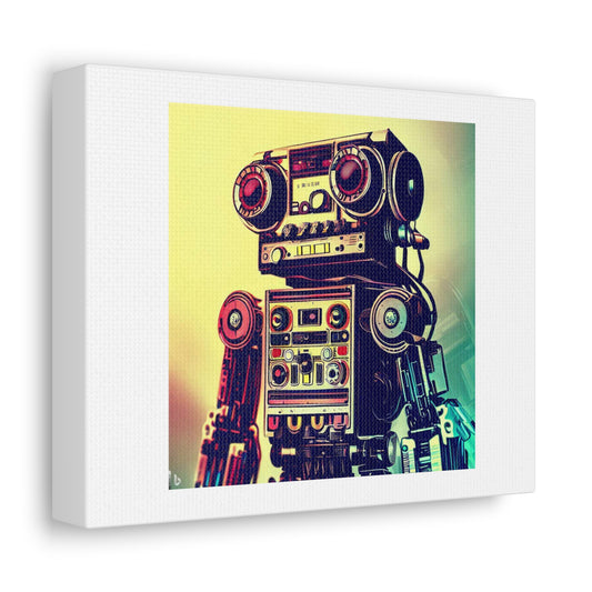 Robot Made From Analogue Stereo Equipment digital art 'Designed by AI' on Satin Canvas