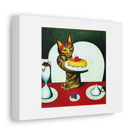 Cat Eating Cake Digital Art 'Designed by AI' on Satin Canvas, Stretched
