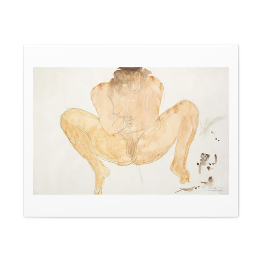 Naked Woman Masturbating, Vintage Erotic Art Print on Satin Canvas, Stretched