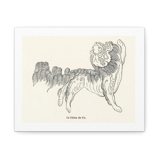 Chinese Decorative Art Print Le Chien de Fô on Satin Canvas, Stretched