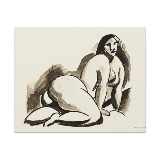 Female Nude Seated by Carl Newman Art Print on Satin Canvas, Stretched