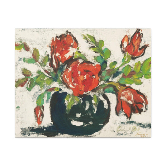 Bouquet, Flower Vase Art Print on Satin Canvas, Stretched