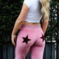 Vireous Women's Elastic Sports Star-Embroidery Casual Pants