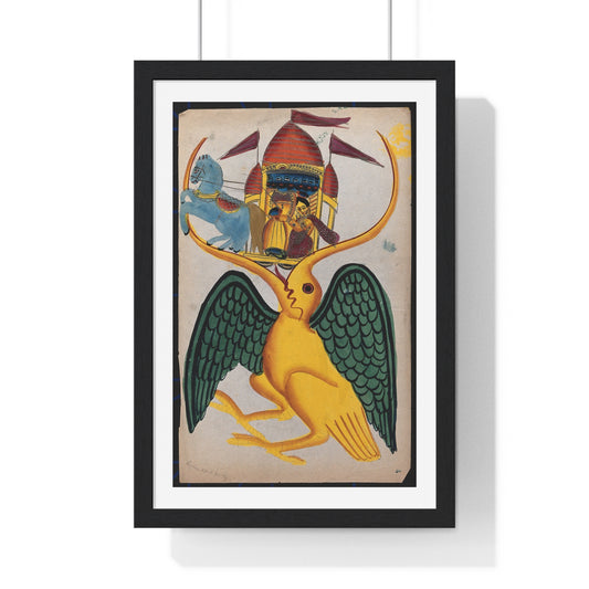 Rāma and Sītā Being Carried in the Beak of Jatayu (circa1880) Indian Watercolour, from the Original, Framed Art Print